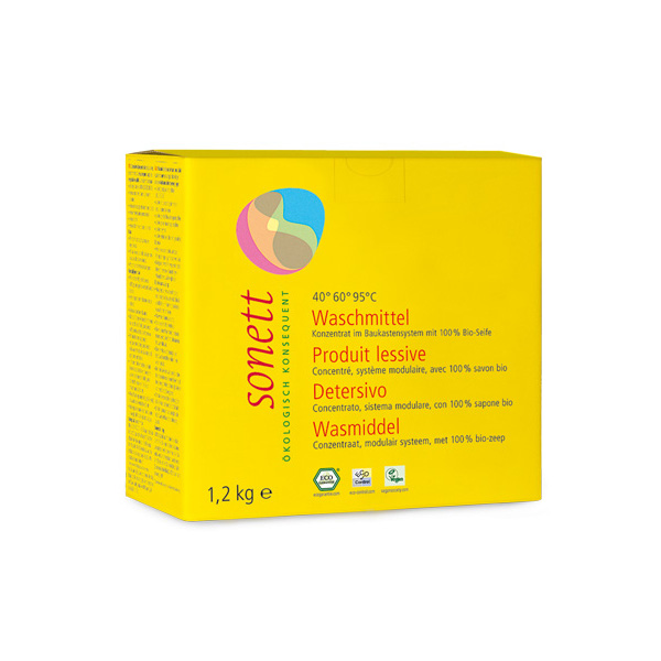 Odpowiedni do prania wszystkich tkanin z bawełny, lnu, włókna konopnego oraz mieszanych. Głównym składnikiem aktywnym Proszku do prania Sonett jest czysto roślinne mydło. Mydło jest substancją czyszczącą najbliższą człowiekowi i naturze. W przeciwieństwie do wszystkich innych surfaktantów, mydło rozkłada się bezpośrednio po użyciu, tracąc swe własności powierzchniowo czynne w momencie reakcji z wapniem zawsze obecnym w wodzie, po czym ulega degradacji całkowicie i szybko.