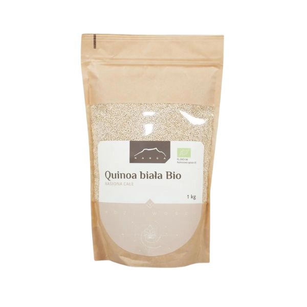 Komosa ryżowa (quinoa) biała – rodzaj kaszy pozyskiwanej z rośliny uprawianej w górskich rejonach Peru, Chile i Boliwii. Występuje w kilku odmianach: białej, czerwonej i czarnej. Od tysięcy lat stanowi ważny element diety rdzennych mieszkańców Ameryki Południowej, dlatego nazywana bywa „świętym zbożem Inków”. Chociaż pod względem botanicznym zbożem nie jest, to jej święty przydomek wynika z wielu odżywczych i prozdrowotnych właściwości. Komosa wyróżnia się wysoką zawartością białka (do 20%), składającego się z pełnej gamy aminokwasów. Stanowi także dobre źródło węglowodanów złożonych, nienasyconych kwasów tłuszczowych, błonnika, flawonoidów, witamin (zwłaszcza E i z grupy B) oraz składników mineralnych (cynku, magnezu, potasu, wapnia i żelaza). Quinoa nie zawiera glutenu, dlatego stanowi świetny zamiennik wielu zbóż i kasz na diecie bezglutenowej. Jest lekkostrawna, wspiera prawidłowy metabolizm, wykazuje działanie antyoksydacyjne. Charakteryzuje się delikatnym, lekko orzechowym smakiem. Biała komosa jest bardziej subtelna w smaku niż jej pozostałe odmiany. Sprawdza się jako dodatek do gulaszy warzywnych, sałatek, dań typu curry, a także potraw na słodko z mlekiem, owocami i orzechami.