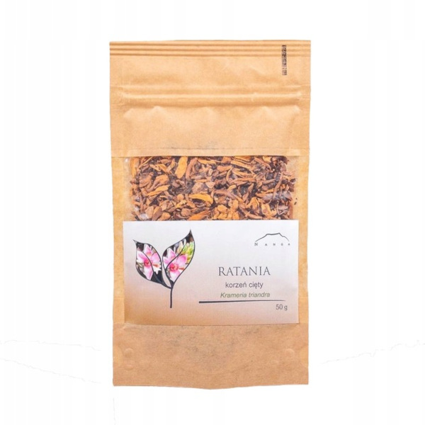 Ratania (Krameria triandra) – czyli pastwin trójpręcikowy, to krzaczasta roślina o drobnych, jajowatych liściach i ciemnoróżowych kwiatach. Rośnie głównie w Ameryce Południowej, na zachodnich zboczach Andów. Surowcem zielarskim jest korzeń, charakteryzujący się wysoką zawartością składników aktywnych, takich jak: katechiny, garbniki, procyjanidyny, polifenole, flawonoidy, flawonole, lignany, taniny. Wśród rdzennej ludności ratania jest znana ze swoich zdrowotnych właściwości od wieków. Peruwiańska medycyna tradycyjna zaleca korzeń pastwinu jako składnik preparatów do higieny jamy ustnej. Ratania wykazuje silne działanie ściągające, dzięki czemu korzystnie wpływa na cerę tłustą, osusza wypryski, sprzyja gojeniu się ran, siniaków, oparzeń oraz łagodzi podrażnienia w przewodzie pokarmowym. Surowiec ten świetnie sprawdza się jako składnik kompresów na skórę oraz domowej roboty past do zębów i płynów do pukania jamy ustnej. Po herbatki z ratanii warto sięgać, aby załagodzić nieprzyjemne odczucia w układzie trawiennym.