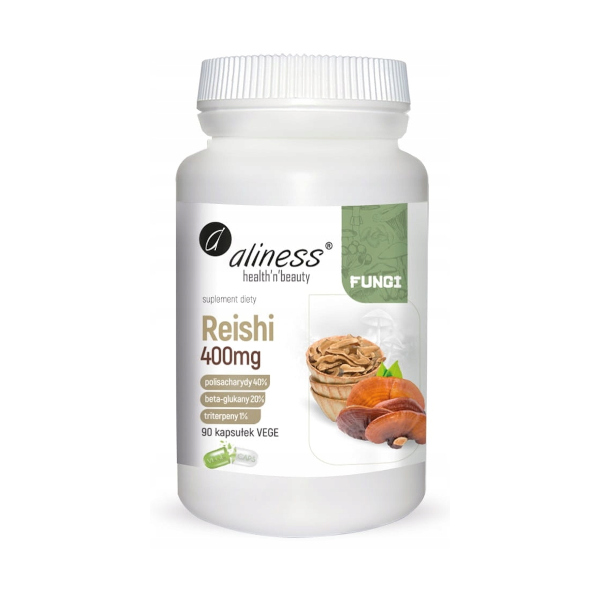 Aliness Reishi 400 mg powstał w oparciu o wysokiej jakości, potrójnie standaryzowany ekstrakt z owocników grzybów Reishi, co gwarantuje zawartość aktywnych składników co najmniej na poziomie: