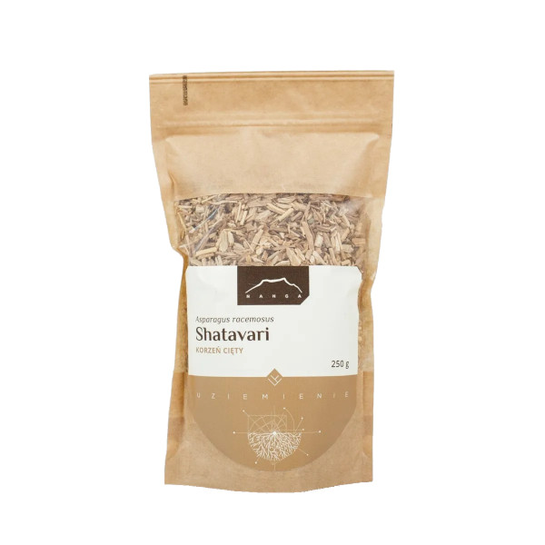 Shatavari (Asparagus racemosus) – roślina z rodziny szparagowatych, o miękkich, cienkich liściach, kształtem przypominających igły. Naturalnie występuje w całej Azji, a szczególnie w Indiach, Nepalu i Sri Lance. Charakteryzuje się silnym systemem korzeniowym – jej korzenie osiągają do 1 metra długości i to właśnie one są głównym surowcem zielarskim. Zawierają wiele cennych substancji aktywnych, wśród których obecne są izoflawony, pełniące rolę naturalnych fitoestrogenów – związków wykazujących korzystne działanie na gospodarkę hormonalną. W Sanskrycie słowo shatavari oznacza “tą, która ma stu mężów”, co podkreśla szczególne znaczenie tej rośliny dla kobiet. Według Ajurwedy Asparagus racemosus reguluje cykl miesiączkowy, pobudza laktację, podnosi libido i zwiększa płodność, łagodzi okołomenstruacyjne napięcie nerwowe, a także te wynikające z okresu przekwitania. Shatavari dobrze wpływa na nastrój, łagodzi stres i wspiera prawidłowe funkcjonowanie układu nerwowego.