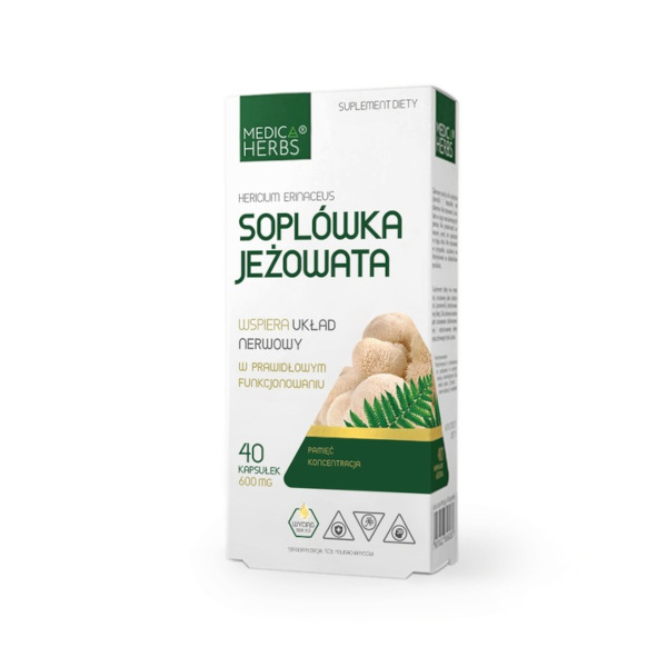 Soplówka jeżowata (Hericium erinaceus) wspiera prawidłowe funkcjonowanie systemu nerwowego. Ze względu na swoje właściwości jest stosowana przy problemach z pamięcią.
