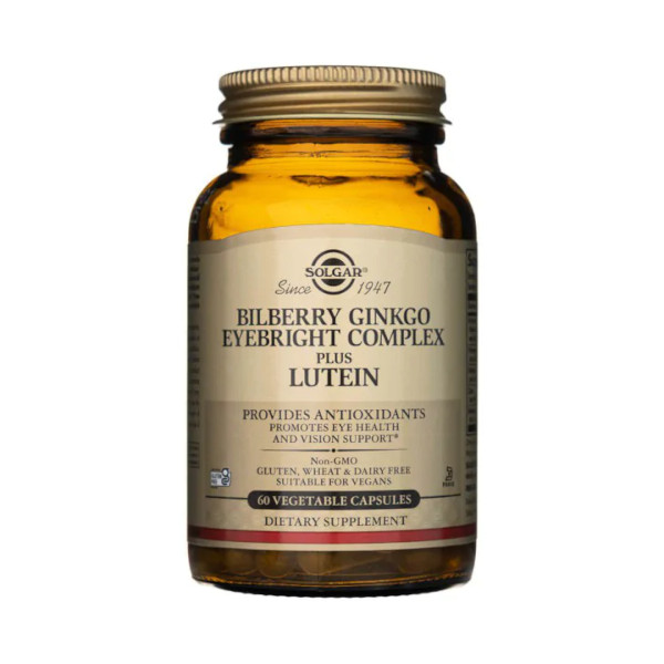 Bilberry Ginkgo Eyebright Complex Plus Lutein marki Solgar to suplement diety w kapsułkach roślinnych zawierający zestaw składników, które są niezbędne do utrzyma narządu wzroku w optymalnej kondycji.