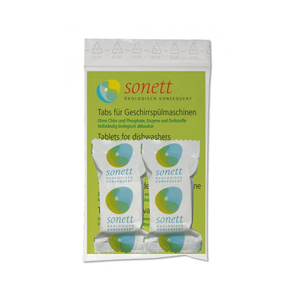 Tabletki do zmywarki Sonett zawierają minerały i składniki organiczne w pełni biodegradowalne. Nie zawierają enzymów, agresywnych chlorowych środków wybielających, fosforanów i dodatków zapachowych.