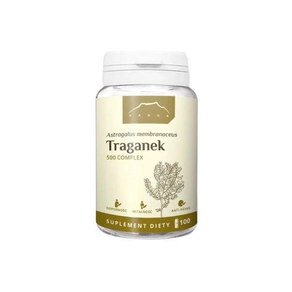 Mrozoodporna roślina z charakterystycznymi kwiatami i pędami porośniętymi pierzastymi liśćmi. Występuje w Chinach i Mongolii. Jako surowiec zielarski wykorzystuje się korzeń traganka. Najważniejsze substancje aktywne to saponiny triterpenowe. Stosowany w Tradycyjnej Medycynie Chińskiej. Wspiera system odpornościowy organizmu. Kapsułki bez dodatku barwników, konserwantów, wypełniaczy i substancji poślizgowych.