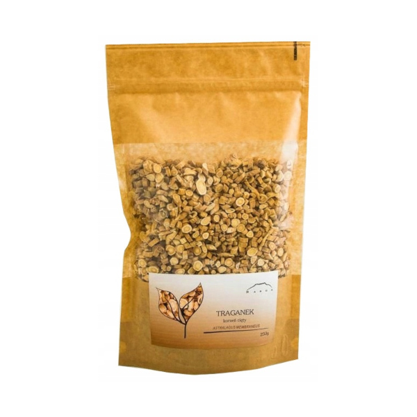 Traganek błoniasty (Astragalus membranaceus) – roślina należąca do rodziny bobowatych, o owalnych liściach i groniastych kwiatach, wytwarzająca owoce w postaci strąków. Naturalnym rejonem jego występowania są Chiny oraz Mongolia. Uprawiany jest również w Japonii i Korei. Podstawowym pozyskiwanym surowcem zielarskim jest korzeń, bogaty w saponiny triterpenowe i ich pochodne, a także takie substancje czynne, jak izoflawony czy flawonoidy. Tradycyjna Medycyna Chińska nazywa go „żółtym liderem” i zalicza do 50 najważniejszych ziół. Astragalus membranaceus stosowano dla wzmocnienia organizmu, wsparcia układu odpornościowego oraz zwiększenia wytrzymałości. Wiele korzystnych właściwości potwierdzają współczesne badania. Traganek błoniasty wywiera wyraźnie pozytywny wpływ na prawidłowe funkcjonowanie układu odpornościowego, dlatego śmiało można polecić go w okresach narażenia na infekcje.