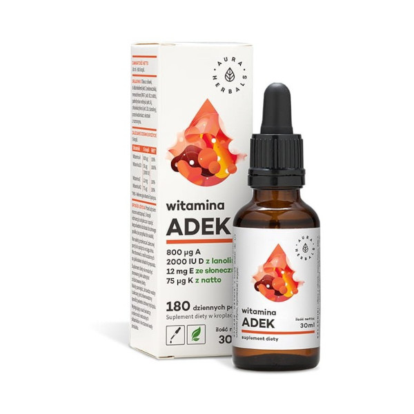 Witaminy A, D, E i K należą do grupy witamin rozpuszczalnych w tłuszczach. Powinny być spożywane w obecności tłuszczu, aby organizm mógł je w pełni przyswoić. Cenimy sobie wygodę, dlatego Witamina ADEK w kroplach została stworzona na bazie oliwy z oliwek – dzięki temu nie trzeba spożywać jej w trakcie posiłku.
