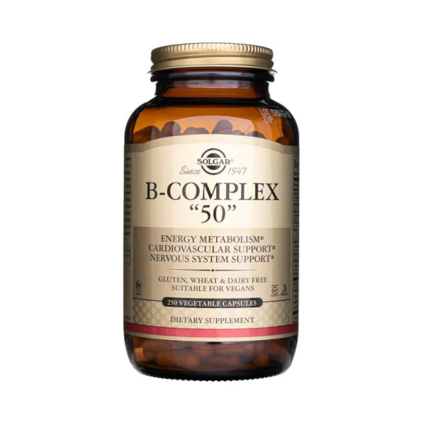 Vitamin B-Complex 50 marki Solgar to suplement diety w kapsułkach roślinnych zawierający kompleks witaminy z grupy B o wysokiej potencji.