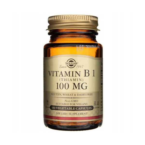 Vitamin B1 (Thiamin) marki Solgar to suplement diety w kapsułkach roślinnych zawierający witaminę B1 w formie chlorowodorku tiaminy.