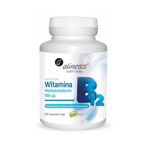 Witamina B12 Methylcobalamin 950µg, 100 kapsułek Vege, 950 mcg (µg)metylokobalaminy, obniża poziom homocysteiny.