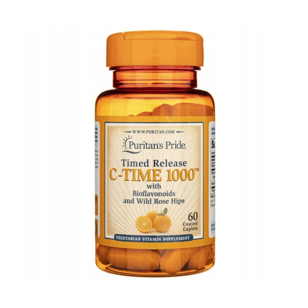 Timed Release C-TIME 1000 od Puritan's Pride to suplement diety zawierający witaminę C, która uwalnia się w organizmie w rozłożonym czasie. Zawiera także bioflawonoidy cytrusowe oraz ekstrakt z dzikiej róży.