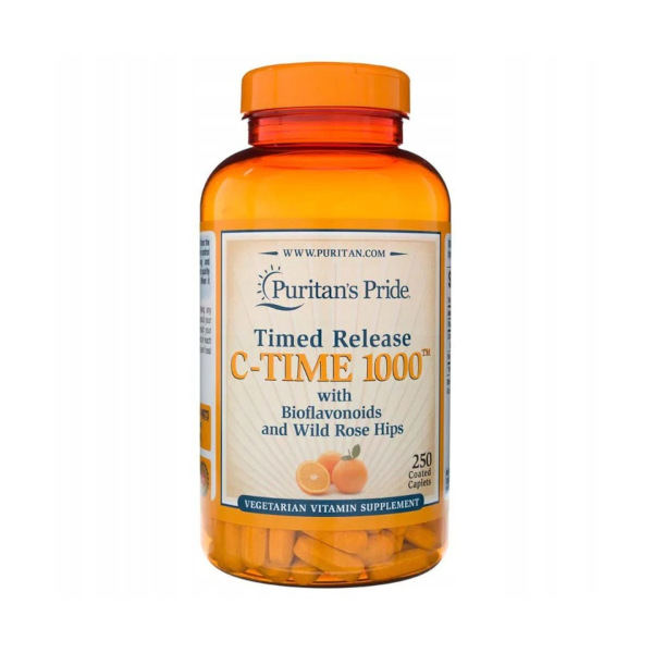 Timed Release C-TIME 1000 od Puritan's Pride to suplement diety zawierający witaminę C, która uwalnia się w organizmie w rozłożonym czasie. Zawiera także bioflawonoidy cytrusowe oraz ekstrakt z dzikiej róży.