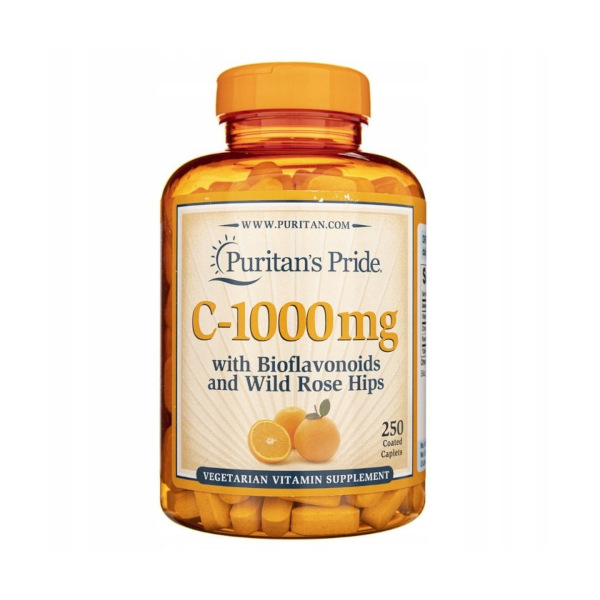 C-1000 mg with Bioflavonoids and Wild Rose Hips od Puritan's Pride to suplement diety w tabletkach powlekanych, łatwych do połknięcia zawierający witaminę C w formie kwasy l-askorbinowego, bioflawonoidy cytrusowe oraz wyciąg z owoców dzikiej róży.