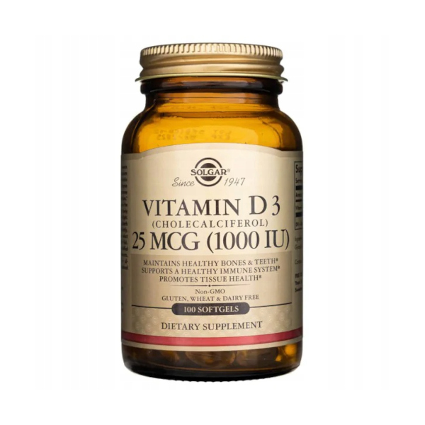 Vitamin D3 1000 IU (25 µg) marki Solgar to suplement diety zawierający witaminę D w formie cholekalcyferolu w postaci kapsułek.