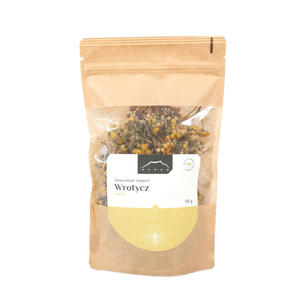 Wrotycz pospolity (Tanacetum vulgare) - silnie aromatyczna bylina należąca do rodziny astrowatych, posiadająca ciemnożółte kwiaty, osiągająca ponad metr wysokości. Występuje w całej Europie oraz na terenach klimatu umiarkowanego Azji. Surowcem zielarskim są nadziemne części rośliny. Wrotycz zawiera w sobie wiele związków aktywnych, które wykazują działanie niszczące wobec bakterii, wirusów, pasożytów i grzybów. Tanacetum vulgare posiada długą historię zastosowania. Dawniej wykorzystywano go do zwalczania pasożytów i przy zatruciach pokarmowych, a także polecano go osobom w stanach niepokoju. Kwiatami nacierano również bolące stawy i naciągnięte ścięgna, wierząc, że przyniesie to ukojenie. Wrotycz dzięki swojemu intensywnemu zapachowi znajduje dodatkowe zastosowanie jako naturalny preparat do odstraszania owadów.