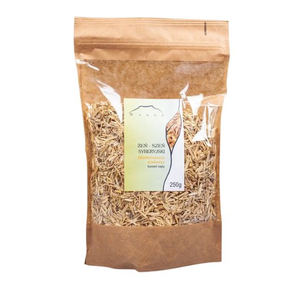 Żeń-szeń syberyjski (Eleutherococcus senticosus) – niewielki krzew z rodziny araliowatych o pięciopalczastych liściach, osiągający od 1 do 2 metrów wysokości. Jak wskazuje nazwa, pochodzi on z Syberii, ale obecnie można spotkać go również w Chinach, Japonii oraz Korei. Jako główny surowiec zielarski wykorzystywany jest jego korzeń. Substancje w nim zawarte to eleuterozydy, które odpowiadają za korzystny wpływ żeń-szenia syberyjskiego na układ nerwowy. Roślina ta znana jest we wschodniej medycynie tradycyjnej od 4000 lat, zgodnie z którą regularne spożywanie żeń-szenia zwiększa witalność, wzmacnia odporność oraz poprawia nastrój. Żen-szeń syberyjski sprawdzi się jako zastępnik kawy, ponieważ potrafi dobrze rozbudzić i dodać energii do pracy. Zalecany jest szczególnie sportowcom, studentom oraz osobom prowadzącym aktywny tryb życia.